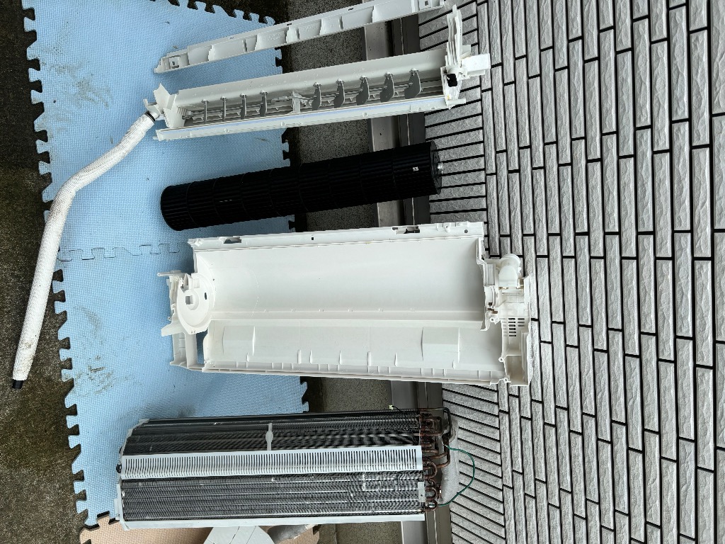 本日は、いつもお世話になっていますリピーター様からエアコンの完全分解洗浄の依頼を受け作業しています♪
